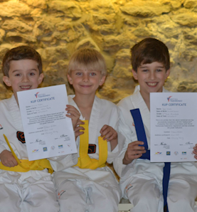 ![]() | Our instructors work hard to keep all students progressing through the grade system whilst maintaining our high standards. To move from grade to grade students take practical exams known as gradings. If you are new to Taekwondo it will take you about three months of training before you are ready to take part in your first grading. All our students are awarded with British Taekwondo Certificates that are recognised by all major Taekwondo governing bodies around the world. Should you need to move around and change clubs during your training you can still keep the grade you have attained. You can download the Taekwondo grading syllabus from our downloads page. In Taekwondo the order of belts you grade through is shown below. The minimum training time between grading is also shown: |